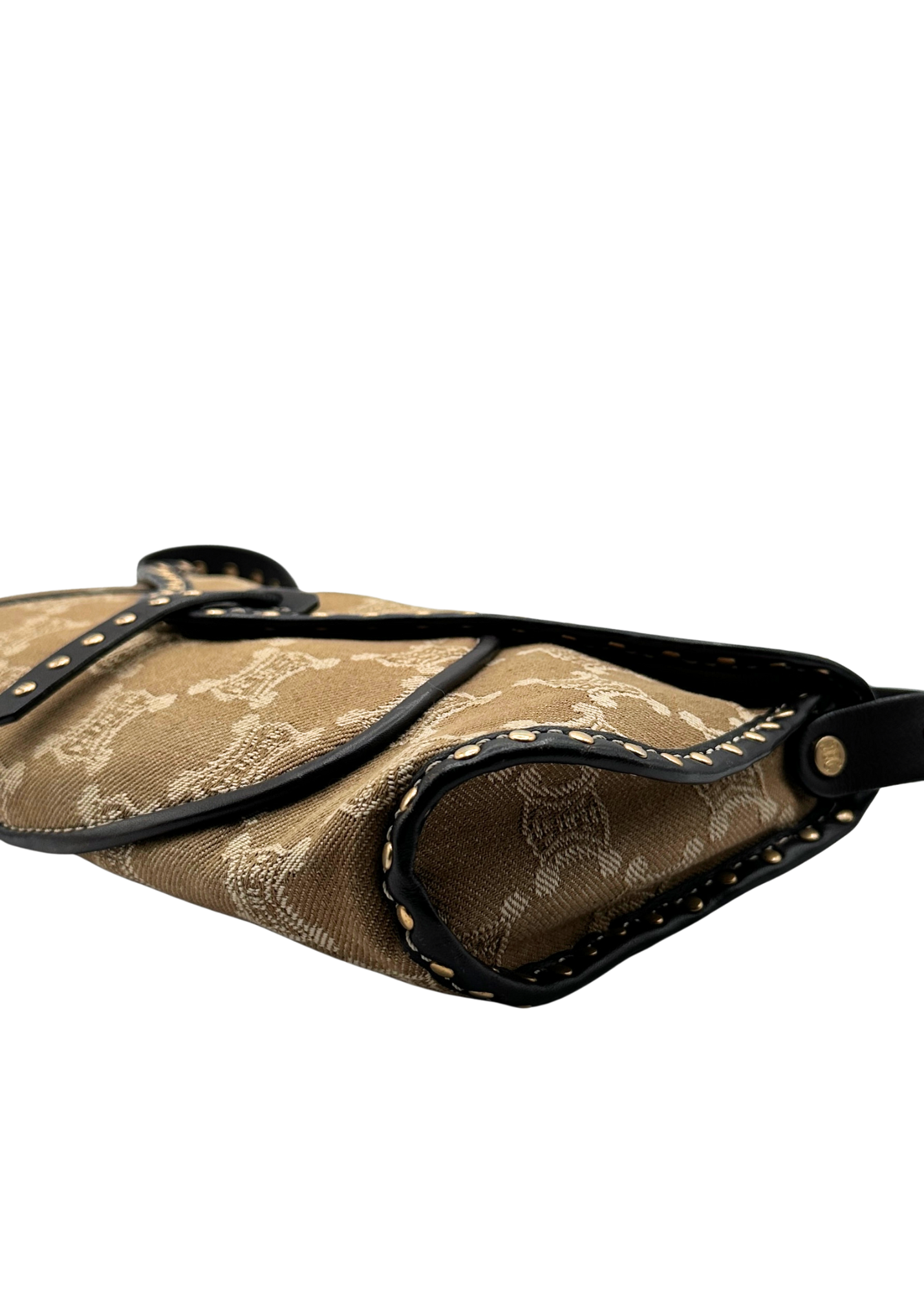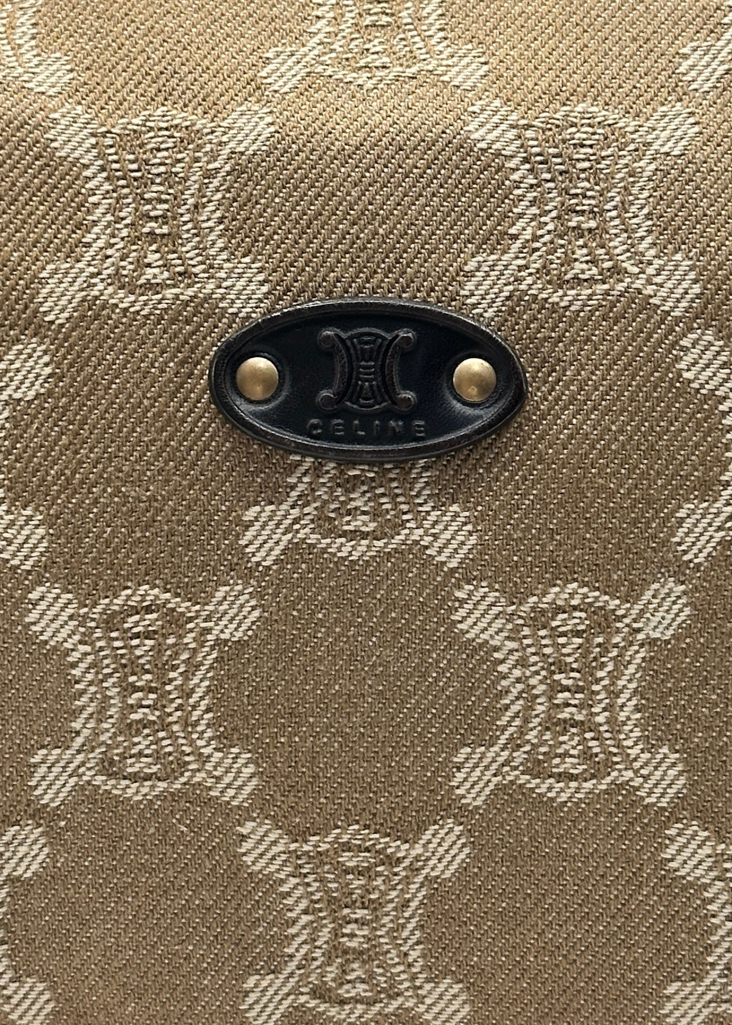 Tan denim jacquard body with white embroidered triomhpe Celine logo