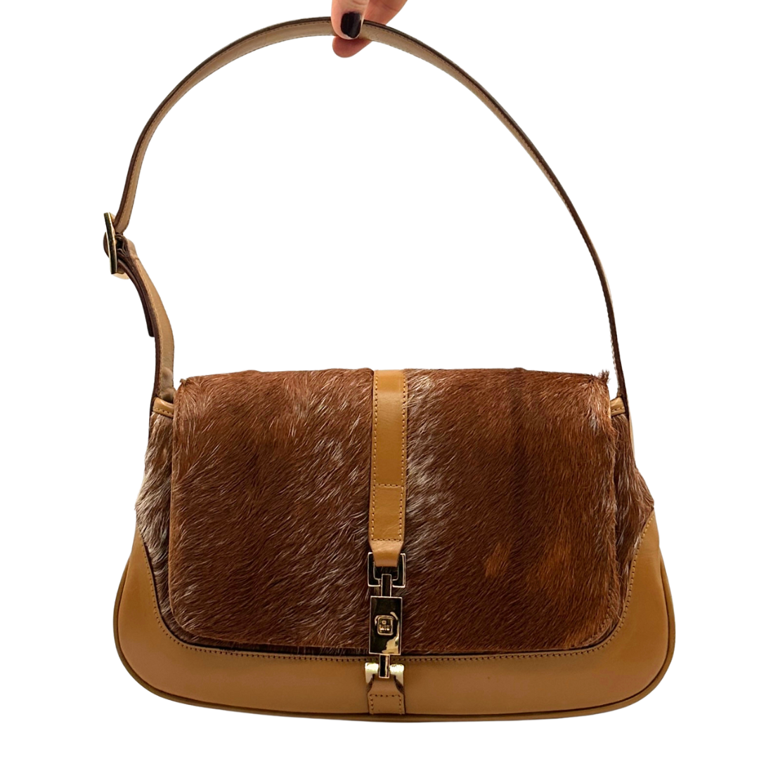 A big trend for Fall '24? Textures. Get the softest and most unique texture with this Gucci small Jackie pony hair shoulder bag.