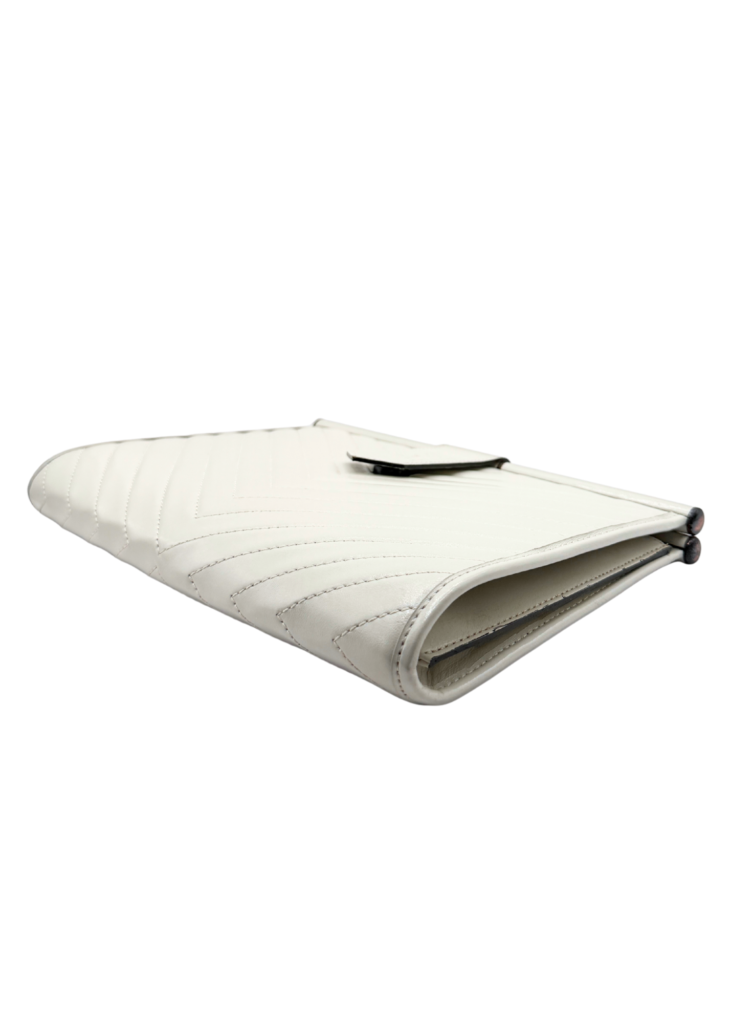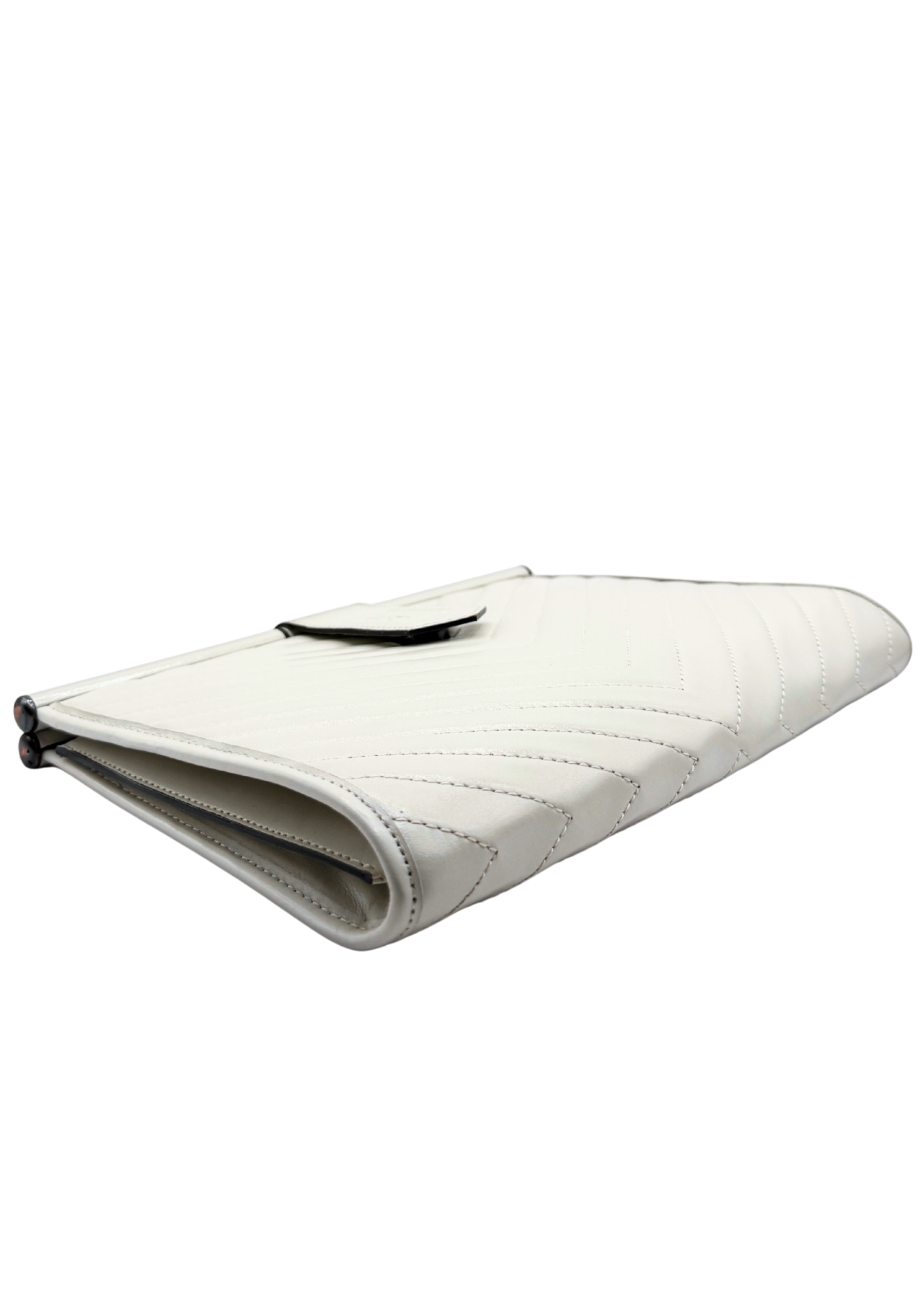 Ivory leather clutch with iconic YSL Cassandra V-stitching detail