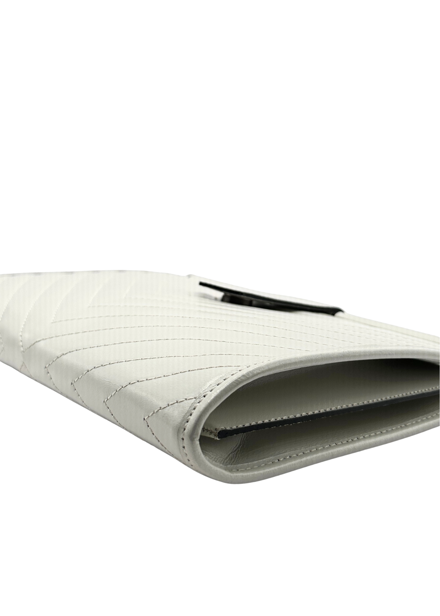 Ivory leather clutch with iconic YSL Cassandra v-stitching detail